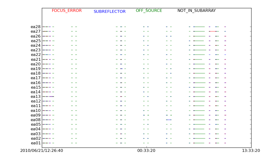 This script reads the Flags.xml table in the SDM directory, and parses the online antenna flags so that they can be listed, plotted, and applied to the MS. Note that the tbuff parameter is a padding value (in seconds) for creating the flag time ranges.