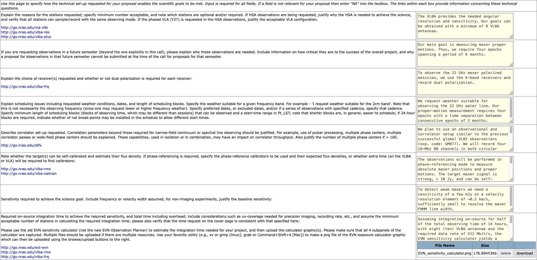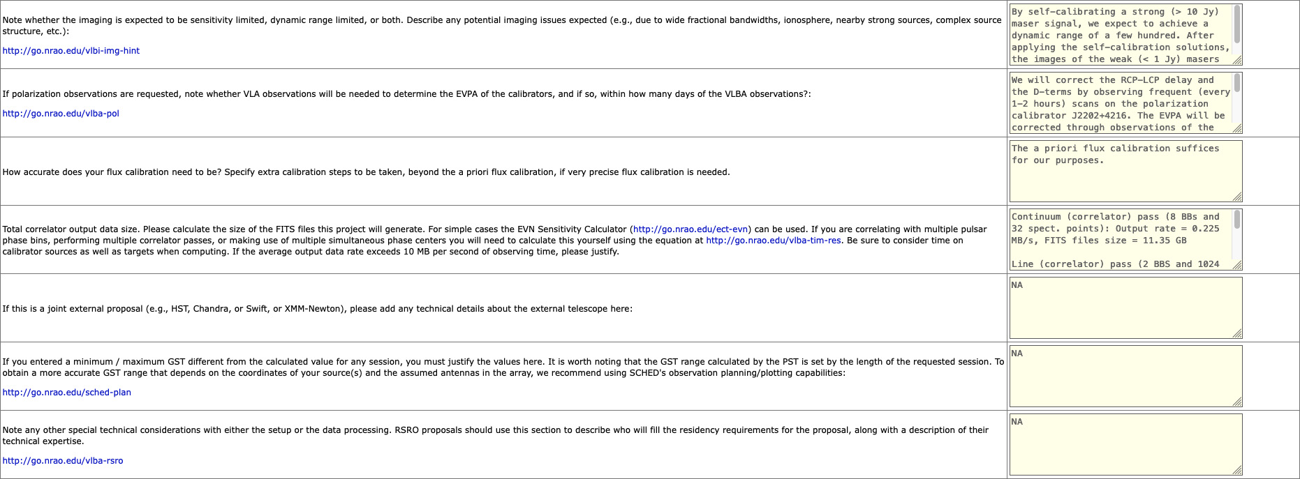 If you have any questions about the Technical Justification section, please contact NRAO staff via the helpdesk.